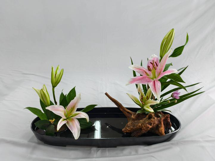 作为风景园林专业本科阶段的特色应用型课程,《盆景与插花艺术》打破了“理论+实践”的传统模式,构建起“基础夯实—技能精进—创新突破”的三阶教学体系。课程内容既涵盖盆景造型原理、插花色彩美学等核心理论,又深耕东方式插花的意境营造、西方式插花的规整构图、现代自由式插花的个性表达等实操技能,更结合风景园林专业特色,新增插花与城市公共空间、庭院景观的适配设计等拓展内容。教学中,郑君芝副教授不仅注重对剪、插、摆等基本功的精细化训练,更通过案例赏析、小组共创、作品互评等形式,引导学生打破思维定式,在传统花艺文化与现代设计理念的碰撞中,培养解决实际场景花艺需求的能力,全面提升艺术鉴赏力与创新创作力。