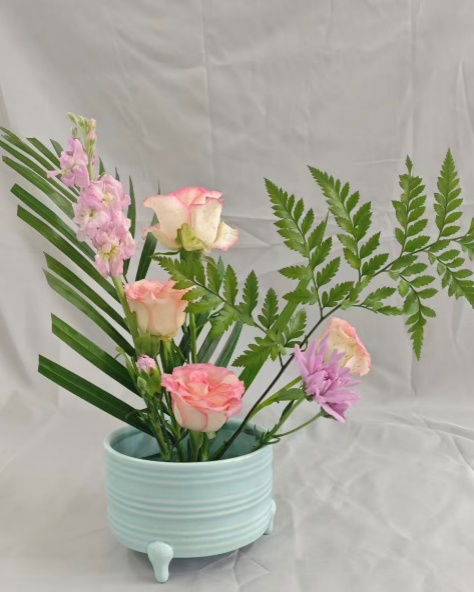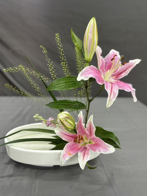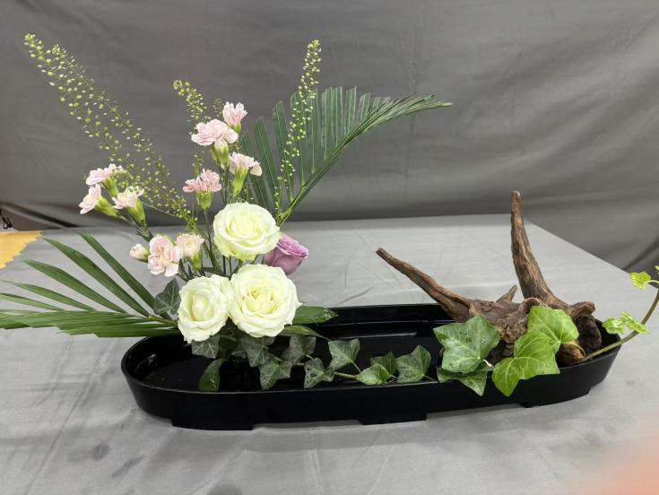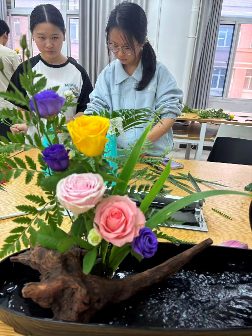 课程学习期间,同学们以花为媒,完成了从“理论认知”到“实践创作”的完整蜕变。在选材上,学会精准把握植物的形态特质与季节特性;在构图中,逐渐领悟线条、疏密、虚实的平衡之道;在创作里,更是大胆融入风景园林专业的空间思维,让作品兼具自然意趣与景观视野。大家在作品中追求“以花传情、以景表意”,既有淡雅清新的自然风作品,也有兼具现代设计感的创意之作,在一枝一叶的排布中,深刻体会到插花艺术的自然之美、人文之韵与浪漫之情。此次课程不仅点燃了同学们对花艺的热爱,更让大家意识到传统插花文化在现代景观设计中的独特价值,为后续专业学习注入了新的灵感与活力。