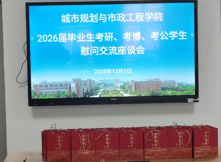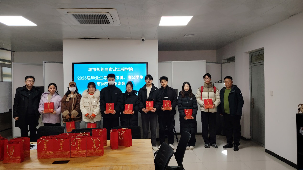 12月5日上午,城市学院在301会议室举办2026届考研考博考公学生慰问交流座谈会。学院党委书记陈宣、副院长(主持工作)房平、党委副书记鱼园、副院长杨涛出席座谈会,与备战各类考试的学子代表亲切交流,送上学院的关怀与鼓励。座谈会由鱼园主持。