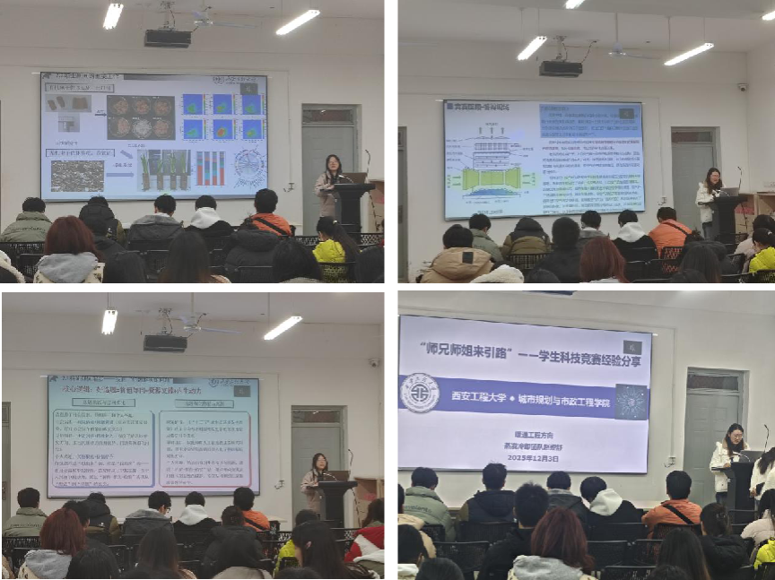 赵娅舒同学则聚焦“如何高效备战高水平学科竞赛”,以其获奖作品“耦合相变储热的住宅高效通风与热回收系统”为例,生动还原了从组队、选题、实验到答辩的完整过程。她分享了如何将《空气调节》《供热工程》等专业知识转化为创新方案,并强调了团队协作与时间管理的重要性。“竞赛不仅是知识的试金石,更是综合能力的加速器。”赵娅舒鼓励新生勇于尝试,在实战中培养解决复杂工程问题的能力。她指出,论文写作与竞赛经历所锻炼的系统思维与创新意识,对未来从事研发、咨询等工作具有重要价值。