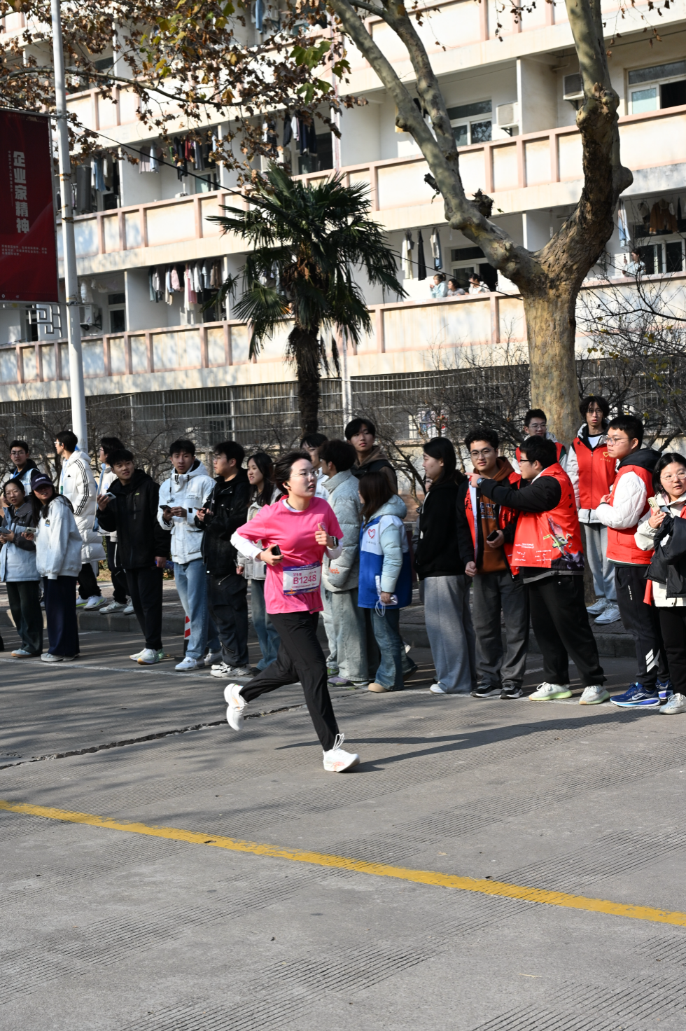 赛事当日,城市学院选手提前抵达赛场。发令声响,他们步伐矫健、全力奔跑,在校园赛道上挥洒汗水,生动诠释了顽强拼搏的体育精神。沿途师生纷纷呐喊助威,气氛热烈。