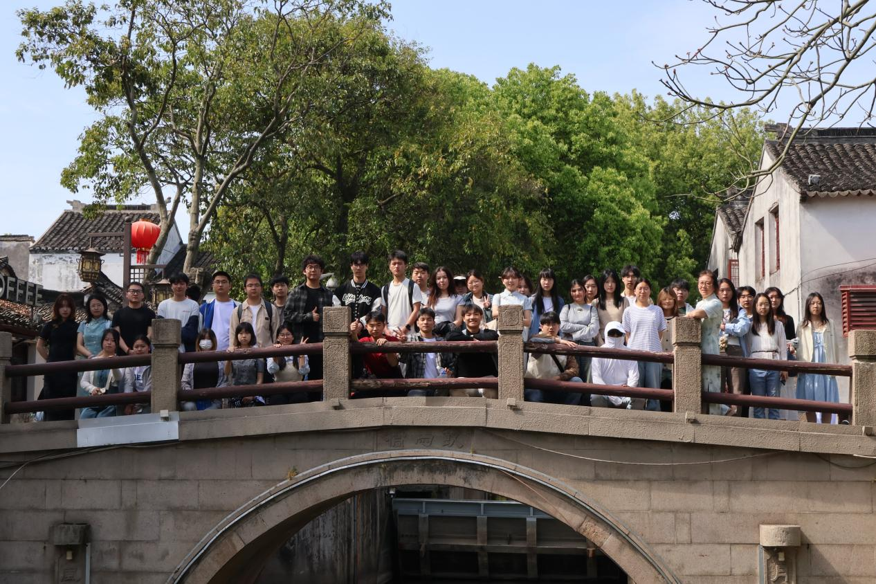 日影西斜时,师生漫游古镇街巷。穿心弄的窄巷仅容一人侧身,青苔斑驳的墙面上,同学们发现明代“水则碑”的残迹;三桥畔的茶楼里,同学们看到乌篷船划过,惊起一串涟漪,倒映着廊檐下的红灯笼,恰似一幅动态的《姑苏繁华图》。