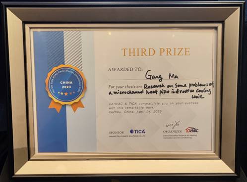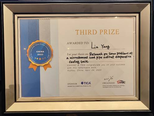 2023年4月24日,由暖通空调产业技术创新联盟(CAHVAC)与南京天加环境科技有限公司(TICA)联合主办的第五届“天加杯”全国暖通空调学生科技竞赛答辩会在江苏徐州举行。本次答辩会全程采用英文答辩。开云黄翔教授指导的研究生杨柳、马钢凭借作品“Research on some problems of a microchannel heat pipe indirect evaporative cooling unit”荣获三等奖。