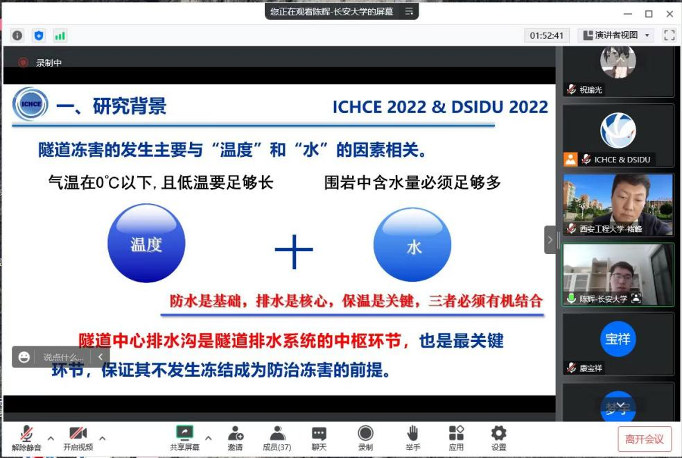 2022年12月17日、18日,由西安建筑科技大学主办的第八届水利、土木工程国际学术会议暨深地空间智能开发与利用高峰论坛(ICHCE 2022 & DSIDU 2022)在线上举行,kaiyun开云官方网站土木工程系褚峰副教授受邀主持会议分会场,学院土木工程专业的部分研究生、本科生参加了本次会议。