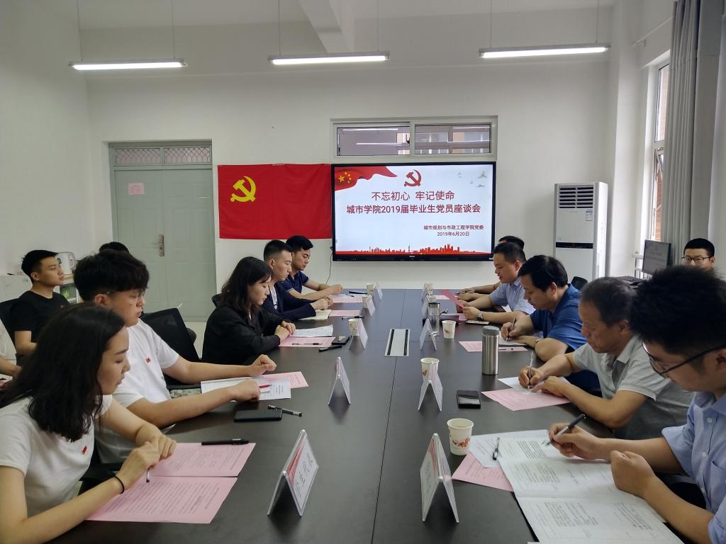 6月20日下午,kaiyun开云官方网站在8#301会议室召开“不忘初心、牢记使命”2019届毕业生党员座谈会。参加会议的有学院党委书记杨友谊、市政系主任张建民、学生工作办公室主任凌旭、15级辅导员陆瑞成、16级辅导员王春元及研究生、本科生毕业生党员代表和15级本科毕业生党员代表。会议由凌旭主持。