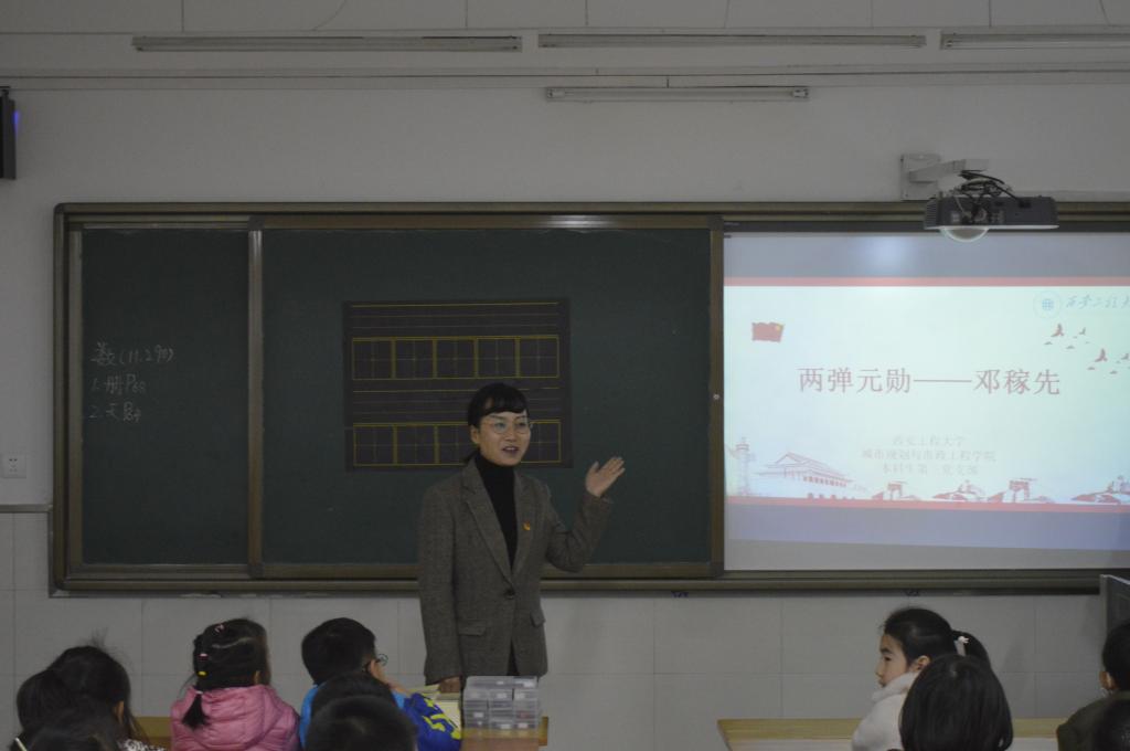 2019年11月29日下午,为贯彻落实 “不忘初心、牢记使命”主题教育精神,kaiyun开云官方网站学生第三党支部在铁五小学一年级开展了主题为“两弹元勋——邓稼先”的爱国主义教育课。参与活动的有铁五小一年级教师,铁五小一年级学生以及开云本科生第三党支部学生党员。本科生第三党支部书记张苹带队开展活动。
