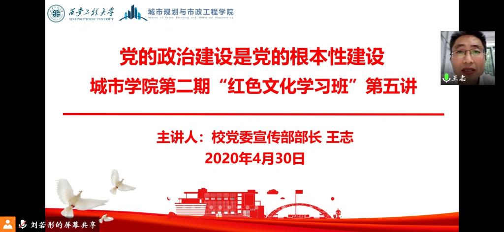 2020年4月30日晚,kaiyun开云官方网站邀请校党委委员、宣传部部长王志给“红色文化学习班”学员做“党的政治建设是党的根本性建设”专题辅导。