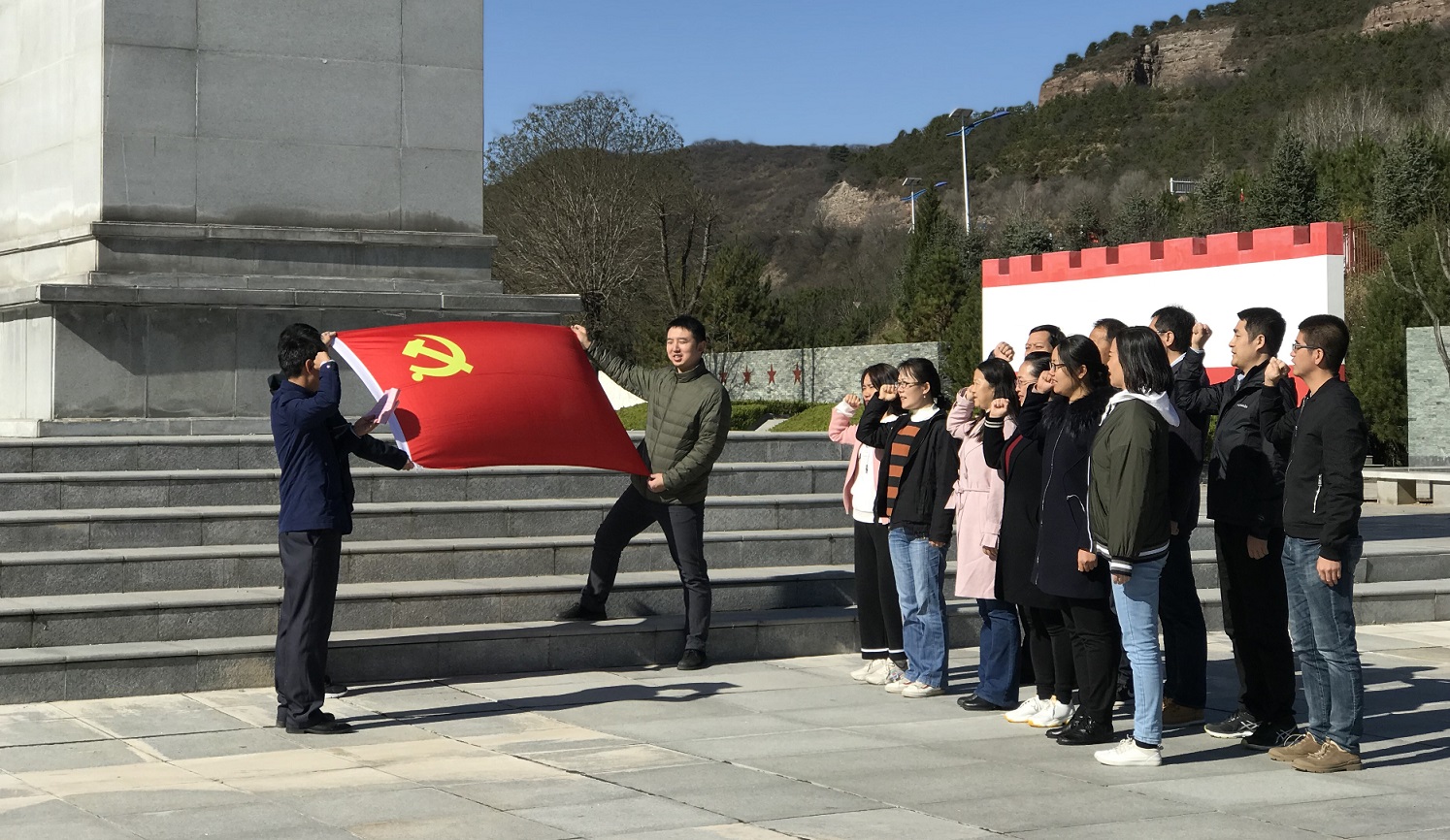 参观结束后,在马栏革命纪念碑下,全体党员在市政系教工党支部书记崔心水的带领下重温入党誓词。