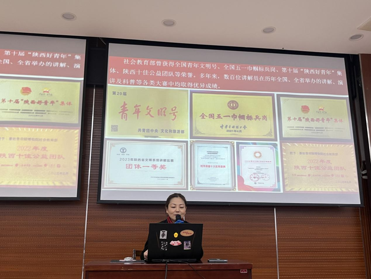 会议伊始,冯莉副主任代表博物院对工程大学长期以来对秦岭博物院文博志愿服务各项工作的支持表示感谢,基于对我校人才质量的认可,博物院将首场招聘宣讲放到我校。她详细介绍了此次秦岭博物院招聘的相关要求,诚挚欢迎喜爱文博的同学们加入秦岭博物院社会教育部。