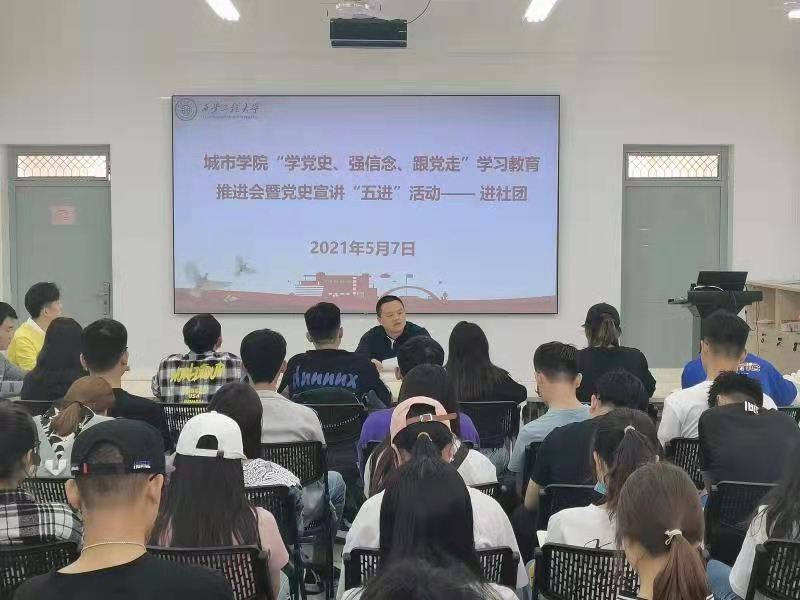 5月7日中午,kaiyun开云官方网站在临潼校区8-322会议室召开“学党史、强信念、跟党走”学习教育推进会暨党史宣讲“五进”活动——进社团宣讲会,学院学工办主任、团总支书记凌旭以及学生组织各部门负责人参加活动。