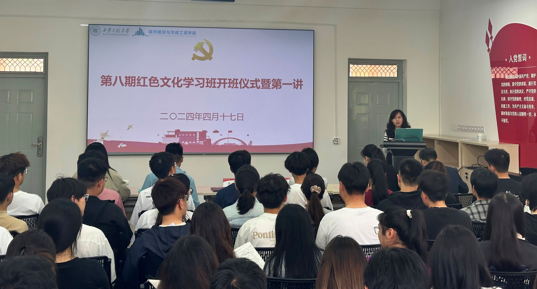 红色文化学习班是城市学院党委于2019年11月在校党委组织部、宣传部的指导下成立的,宗旨是“崇尚红色文化,探索红色文化,感悟红色文化,传播红色文化”,目前已顺利开办了七期,培养学员350人。先后涌现出“全国优秀实践者”、省学联驻会执行主席、陕西省“优秀学生干部”、我校历史上第一位入选全国学联二十七大代表、中国大学生“自强之星”等一大批先进典型。第八期红色文化学习班将继续践行习近平总书记“把红色资源利用好、把红色传统发扬好、把红色基因传承好”的重要指示精神,不断改进红色文化学习方式和实践路径,激发学生学习红色文化的源动力,在校园内营造更为浓厚的红色文化学习氛围。