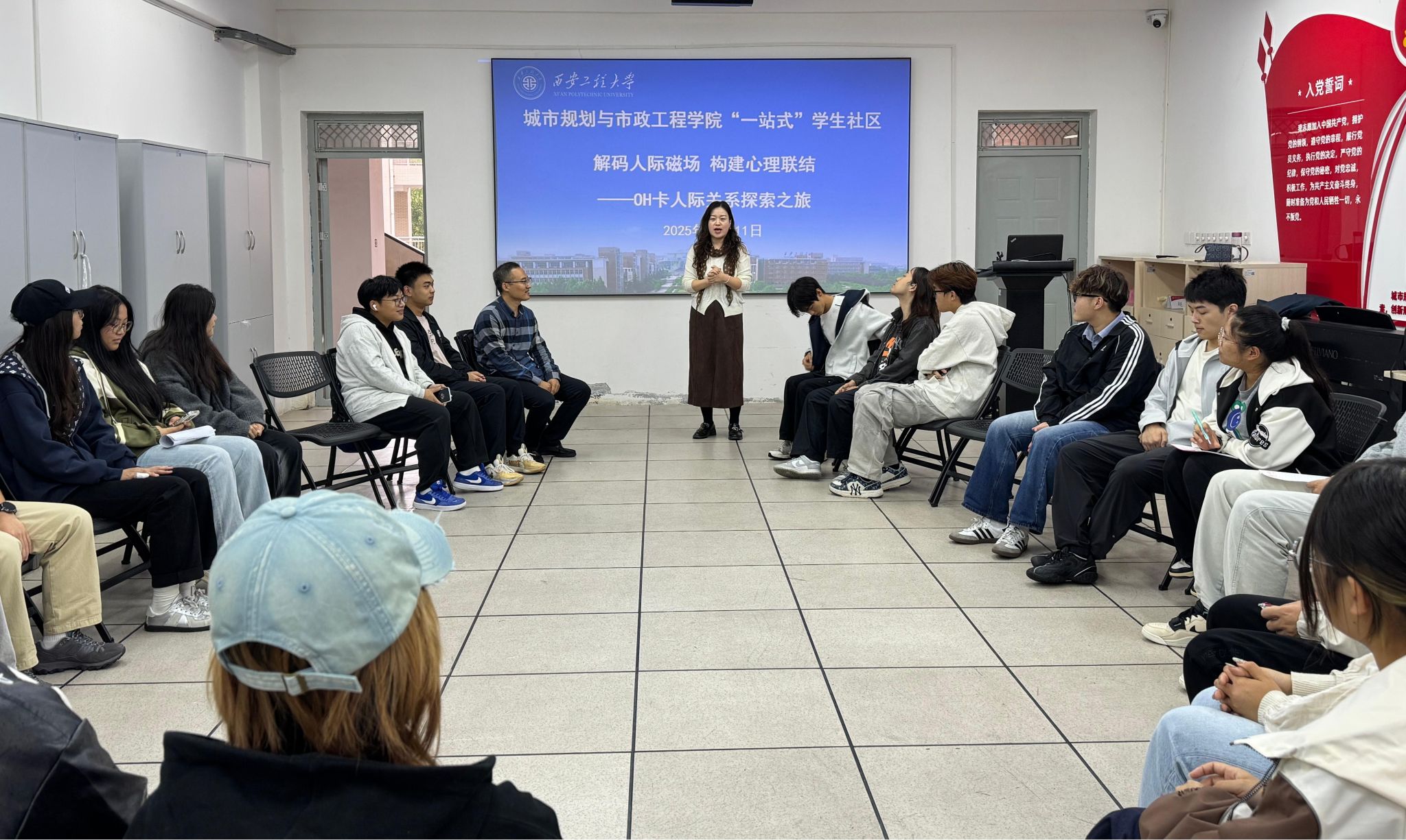 10月11日,kaiyun开云官方网站在学院“一站式”学生社区党团活动室,举办了主题为“解码人际磁场 构建心理联结”的OH卡人际关系探索活动。本次活动邀请学工部大学生心理健康教育与咨询中心主任高黎老师担任主讲,学院学生工作办公室主任陆瑞成、心理辅导员以及2024级、2025级共30名同学共同参与。