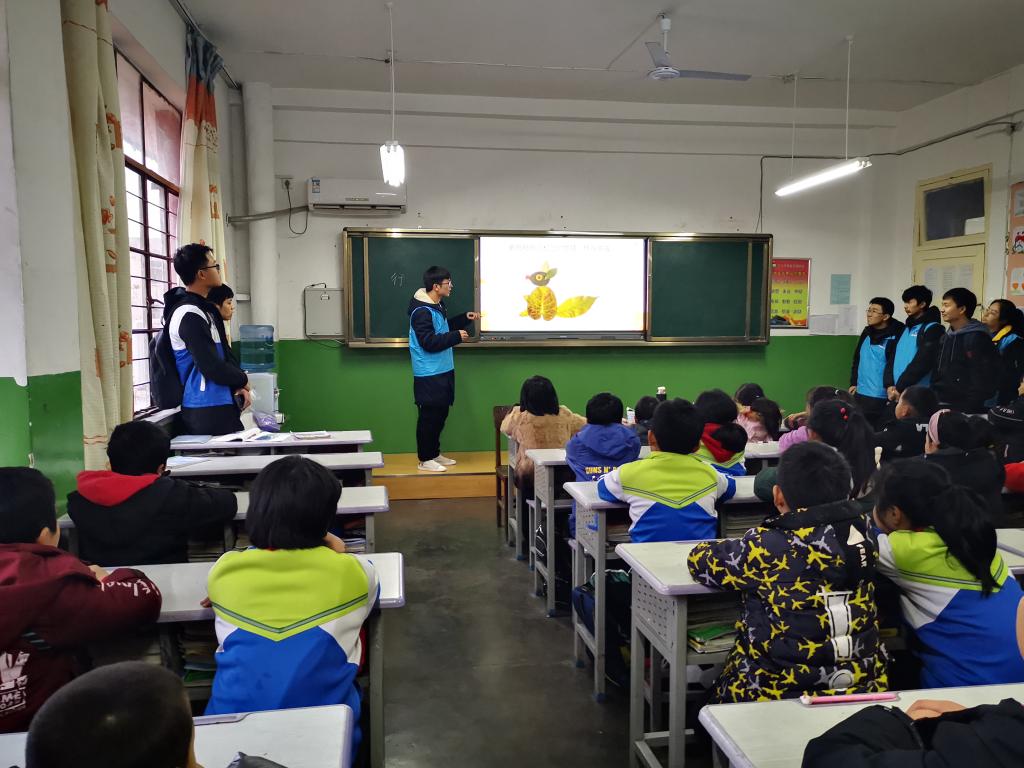 11月28日下午4点,青分队干事在kaiyun开云官方网站校门口准时集合,乘307公交车于4:30到达博睿小学。即使处于深秋,天气寒冷,志愿者们仍跃跃欲试想与同学们交流相处。在博睿小学门口,志愿者集合并拿着志愿者旗帜合照,本次活动正式开始。在对接老师马少辉的带领下,志愿者们来到博睿小学四年级的教室,同学们对我们的到来表示热烈欢迎,掌声雷动。在课程开始前,他们还为我们齐声合唱《夜空中最亮的星》,十分令人感动。随后,主持人孙世英宣布本次活动正式开始。活动第一项,由博睿小学马老师上台致辞,简单介绍我们本次的活动,希望同学们积极配合我们的活动。活动第二项,由本次宣教活动主讲人胡浩冰上台开始本次教学,他用PPT向同学们展示了秋天的诗词引入本次课程主题,并给同学们展示优秀的树叶贴画的照片示例给同学们创意思路,最后介绍了制作树叶贴画的制作步骤。活动第三项,主讲人开始让同学们发挥想象力开始自己动手制作树叶贴画。志愿者在同学们旁边拿着剪刀、固体胶、便利贴等为同学们服务,协助同学们顺利完成自己的作品。在大家的默契配合下,同学们终于都顺利完成了自己的作品。活动的最后,我们给每位同学准备了糖果作为配合活动的奖励,同时在大家的作品中也选出了优秀的三份,为他们准备了笔记本作为活动奖品,获奖的同学们在讲台上拿着自己作品奖品合影留念。至此,本次活动圆满结束。
