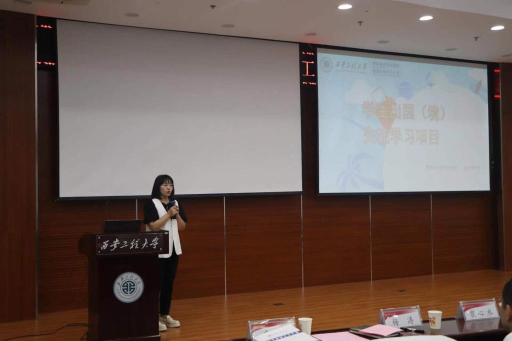 国际交流处副处长黄玲向全体新生介绍学生出国(境)交流学习项目,并简要介绍资助与申请流程,鼓励大家探索人生的更多可能。