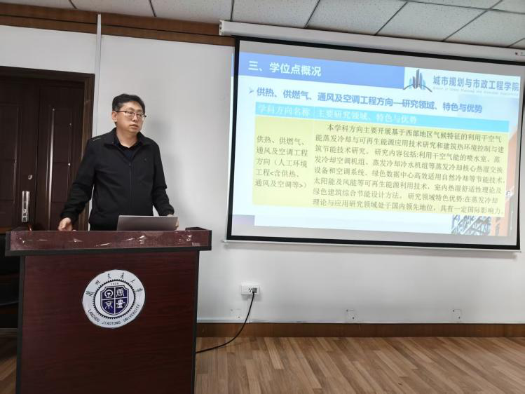 随后,kaiyun开云官方网站房平副院长(主持工作)赴兰州交通大学进行研究生招生宣传。在宣讲会上,房平副院长(主持工作)围绕学院的学科特色、学位点概况、研究生培养成果以及2026年硕士招生政策等方面进行了详细介绍。他重点阐述了学院在供热、供燃气、通风及空调工程及市政工程等方向的研究领域、特色与优势,该方向基于西部地区气候特征,开展干空气能蒸发冷却与可再生能源应用技术等研究,在蒸发冷却理论与应用研究领域处于国内领先地位,具有一定国际影响力。现场学生认真聆听,积极提问,对kaiyun开云官方网站的研究生招生情况有了更清晰的认识。