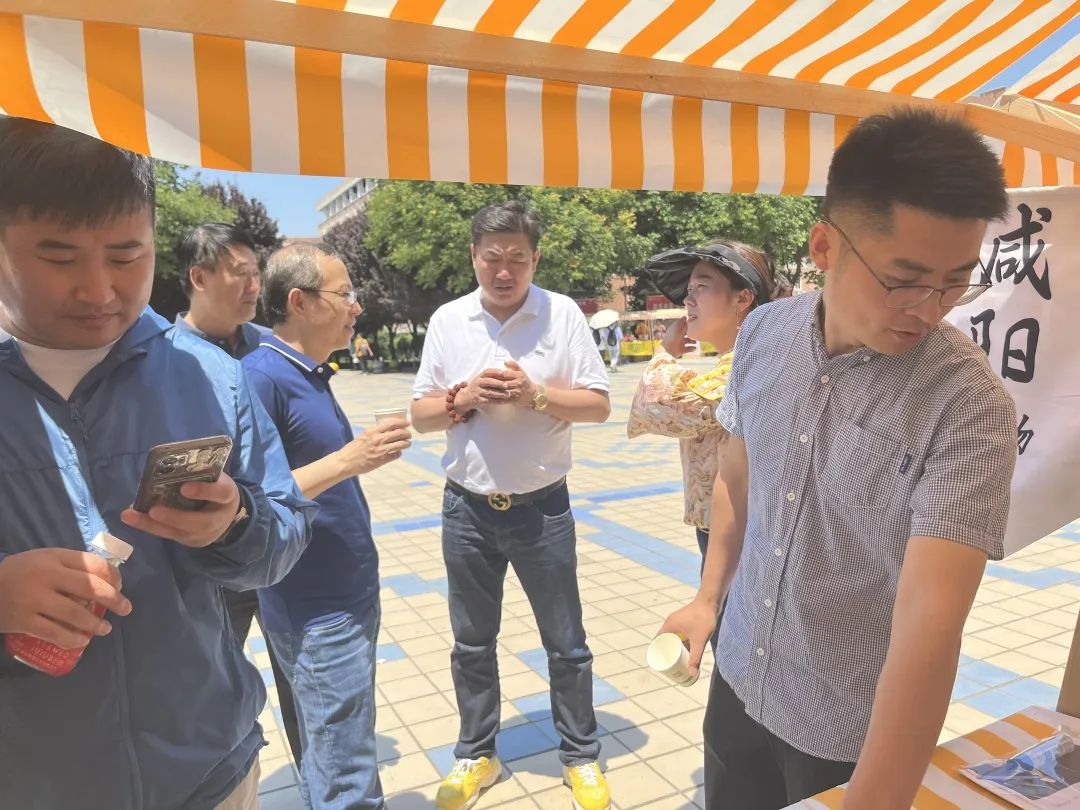 6月14日上午,kaiyun开云官方网站乡村振兴办主任赵宏、副主任樊运清;kaiyun开云官方网站党委书记王劲伟等领导与陕西御水涵山文化传媒有限公司董事长房琦共同参观了大学生线下助农推广活动,由陕西御水涵山文化传媒有限公司总经理刘晓娜介绍活动现场,以及推广赛事、大学生助农推广团。
