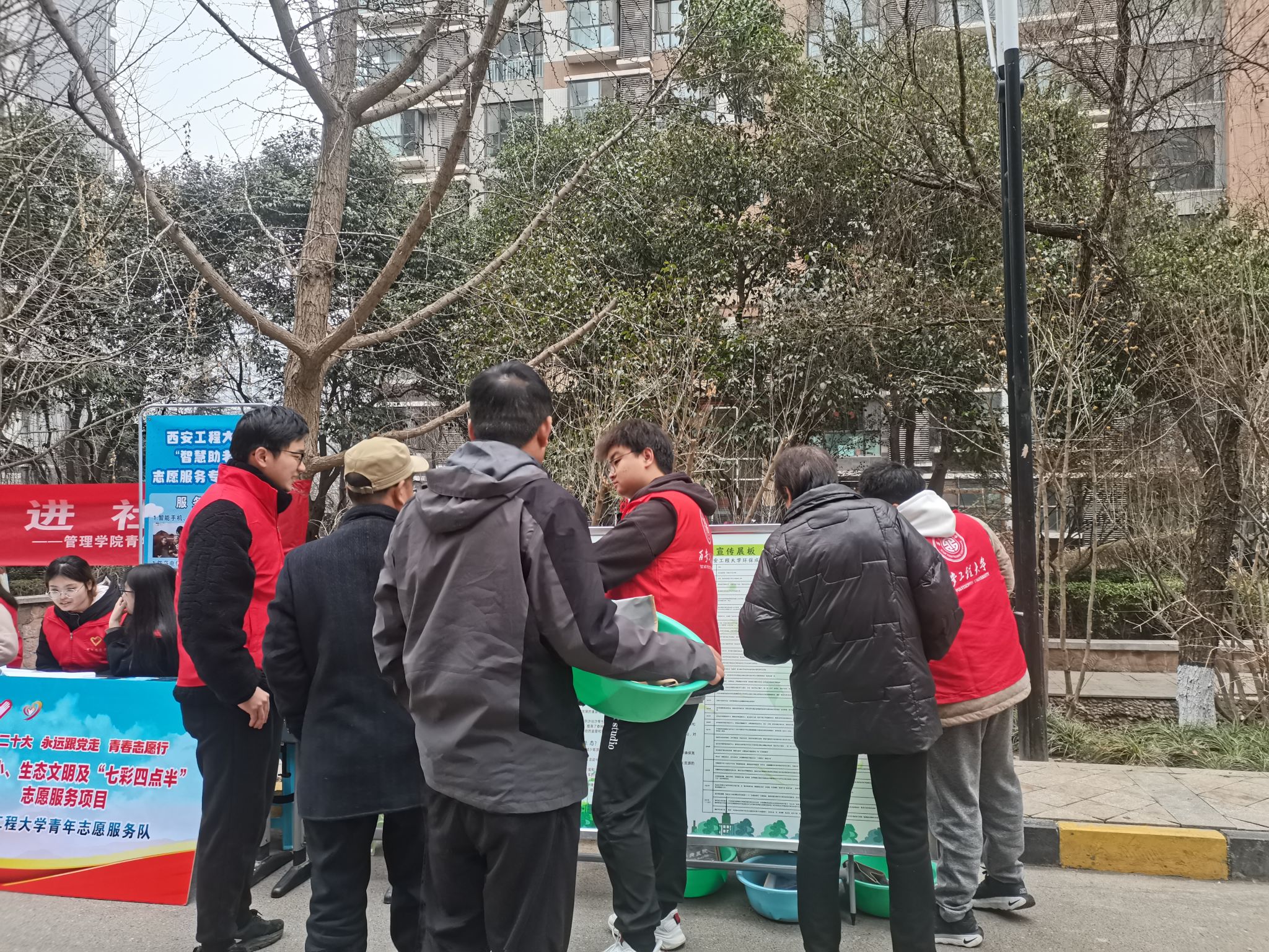 3月5日雷锋纪念日,城市学院“大手拉小手”服务队和筑梦建环社团两个功能型团支部,走进西安市长安区韦曲街道航开路社区,联合开展学雷锋主题团日活动,参加团省委“学习二十大永远跟党走青春志愿行”2024年陕西青年“学雷锋志愿服务”示范行动,进行“关爱大秦岭,保护母亲河”生态保护志愿宣讲活动。