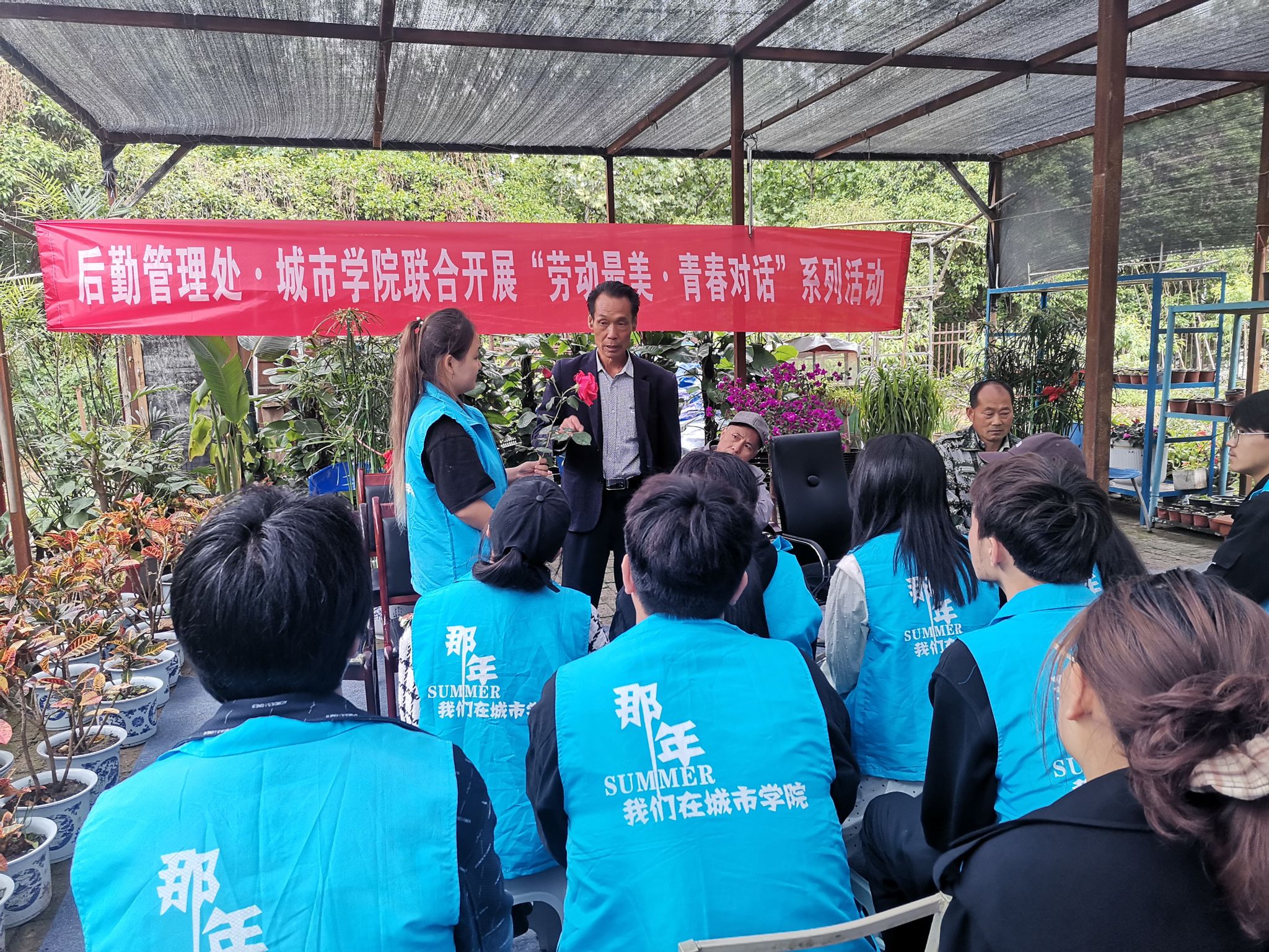 4月30日上午,在五一劳动节和五四青年节来临之际,后勤管理处与城市学院联合开展“劳动最美·青春对话”系列活动之劳育铸魂护花志愿者实训会。后勤管理处运营中心杨婷斐、花房管理员卢建兵、花房园艺师于增利、城市学院团委书记陆瑞成和20余名景观系专业志愿者参加实训会,会议由陆瑞成主持。
