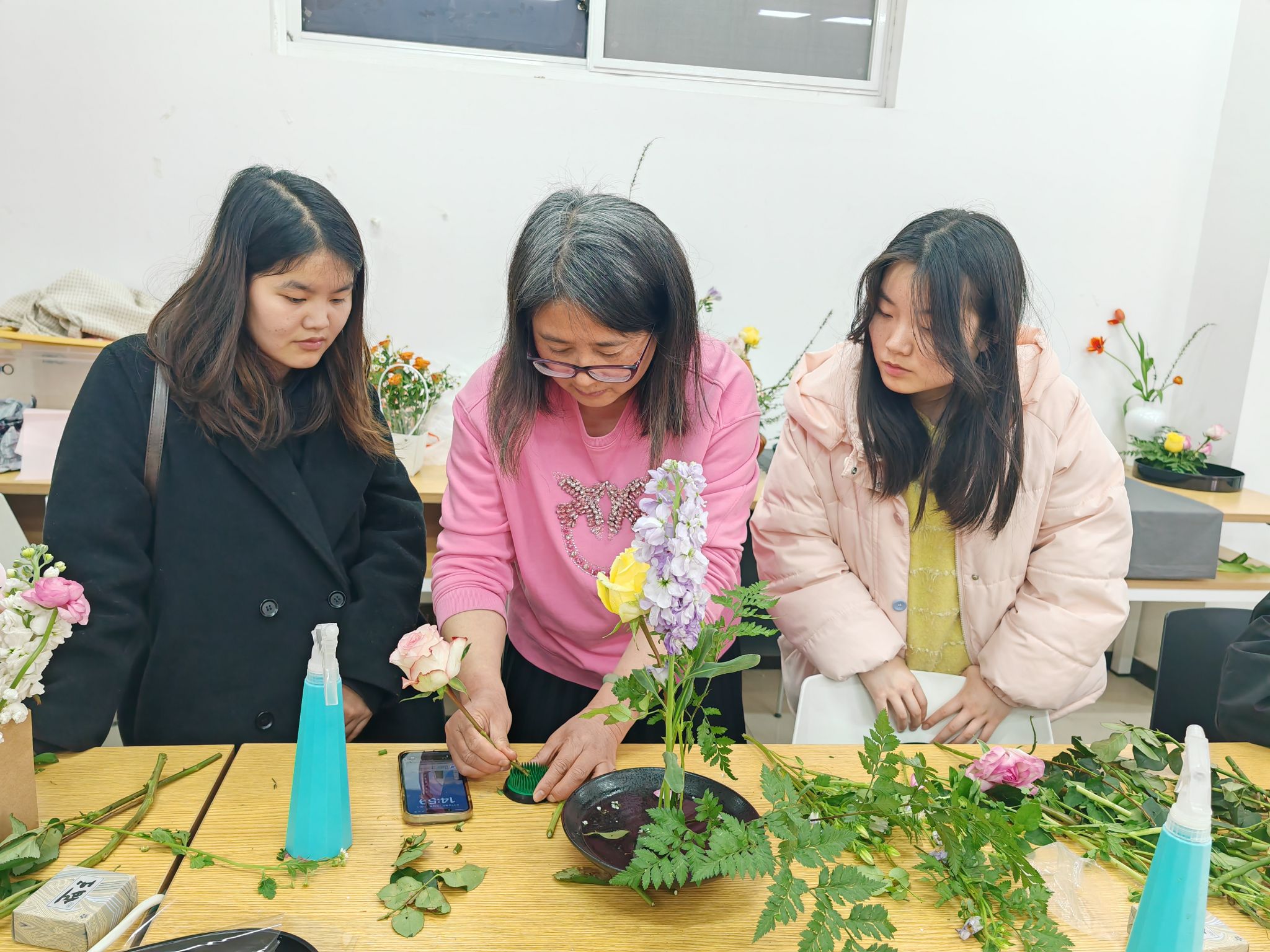 活动中,同学们通过亲手搭配花材、设计花艺作品,放松了身心,缓解了日常学习与生活中的压力。插花过程中的专注与投入,帮助大家提升了自我成就感,感受到了自然带来的心灵治愈。此外,活动还通过园艺活动与心理关爱的结合,帮助同学们释放情绪,培养积极心态。许多同学表示,插花不仅是一项艺术活动,更是一种有效的心理调节方式,能够帮助她们在繁忙的学习生活中找到内心的平静与愉悦。活动结束后,同学们纷纷展示了自己的插花作品,并合影留念。大家表示,此次活动不仅让她们学到了插花技能,还让她们在花香中感受到了心灵的治愈与放松。