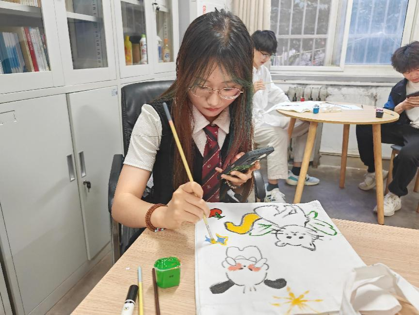 本次活动由学院提供纯白色帆布包,参加活动的各位同学进行自由创作,在帆布包上画出关于励志学习、快乐成长的各种图案,并挑选出优秀作品送给博睿小学的小朋友,旨在向小朋友们传递爱与感恩,也激励大同学们刻苦学习、砥砺前行。
