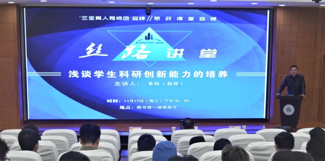 11月17日下午,kaiyun开云官方网站“三全育人导师团”与思政课堂新品牌“丝路讲堂”在临潼校区图书馆一楼报告厅隆重开讲。学院建环导师团团长黄翔教授担任“丝路讲堂”第一讲主讲嘉宾,学院党委副书记袁群、学工办主任凌旭参加了本次活动。