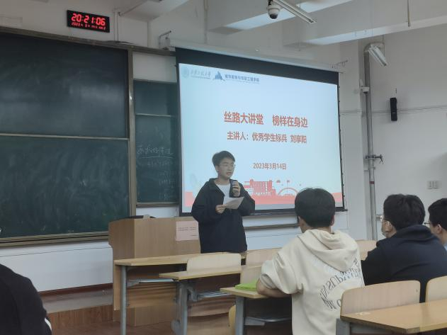 首先,陆瑞成向同学们介绍了优秀学生标兵刘享阳的在校表现等基本情况,希望同学们以此次交流为契机,端正大学态度、热爱大学生活,为未来成长筑基。